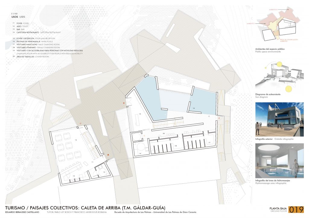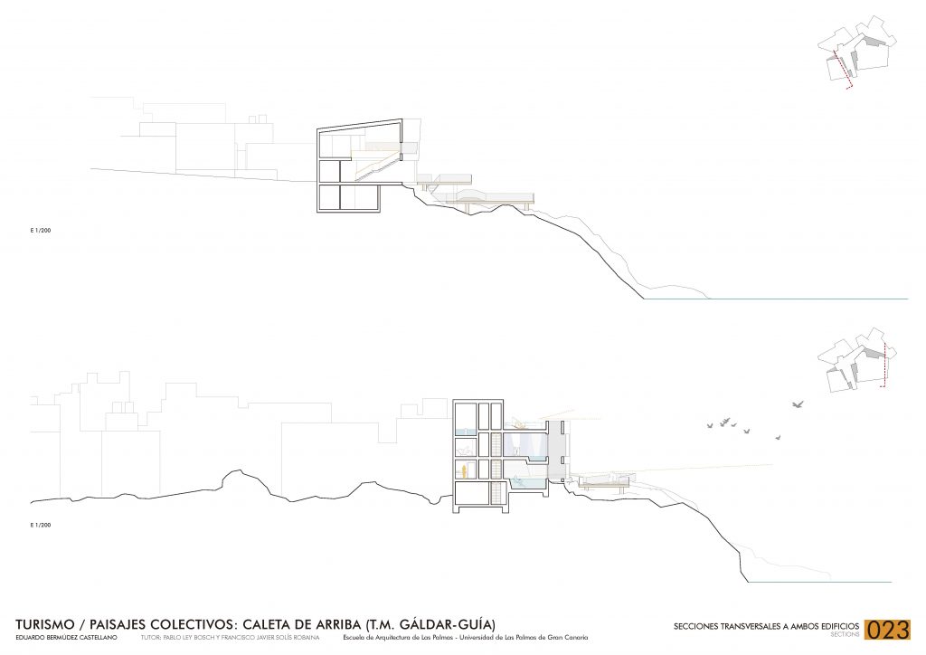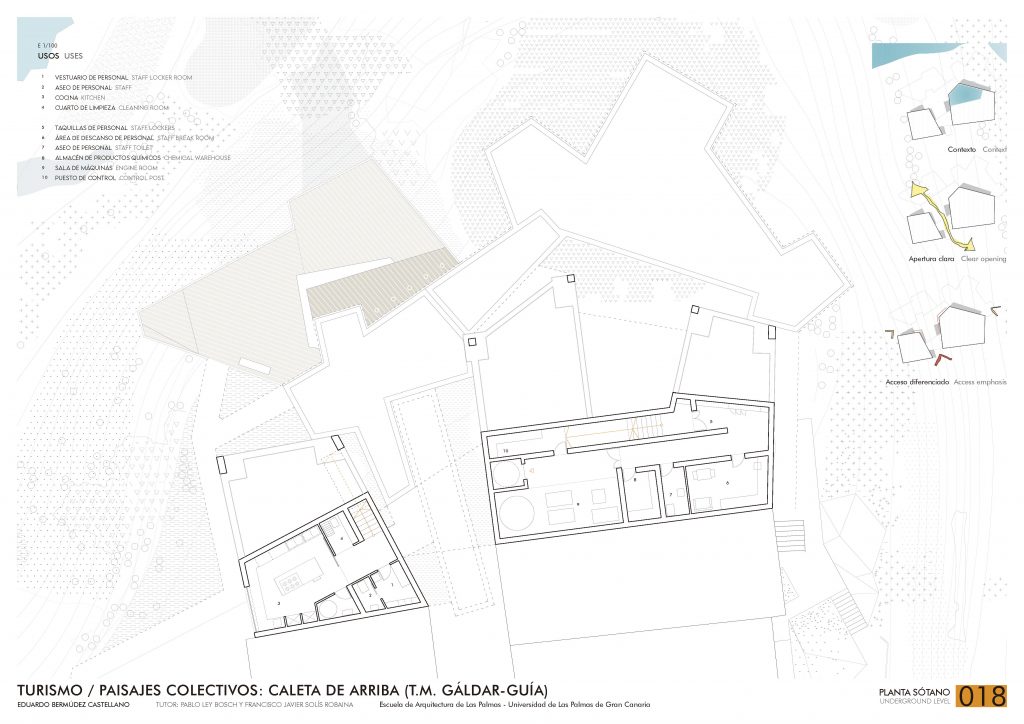 In Caleta de Arriba bestimmt die Geomorphologie die Planung und den Alltag: Rampen und Treppen verbinden die Ebenen und schaffen eine enge Beziehung zwischen Architektur und Gelände.