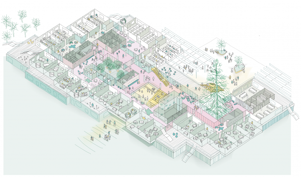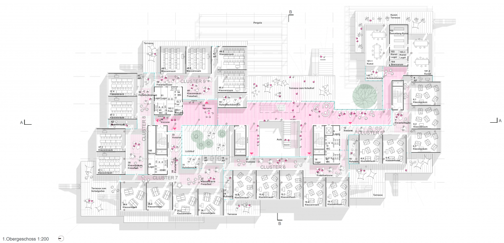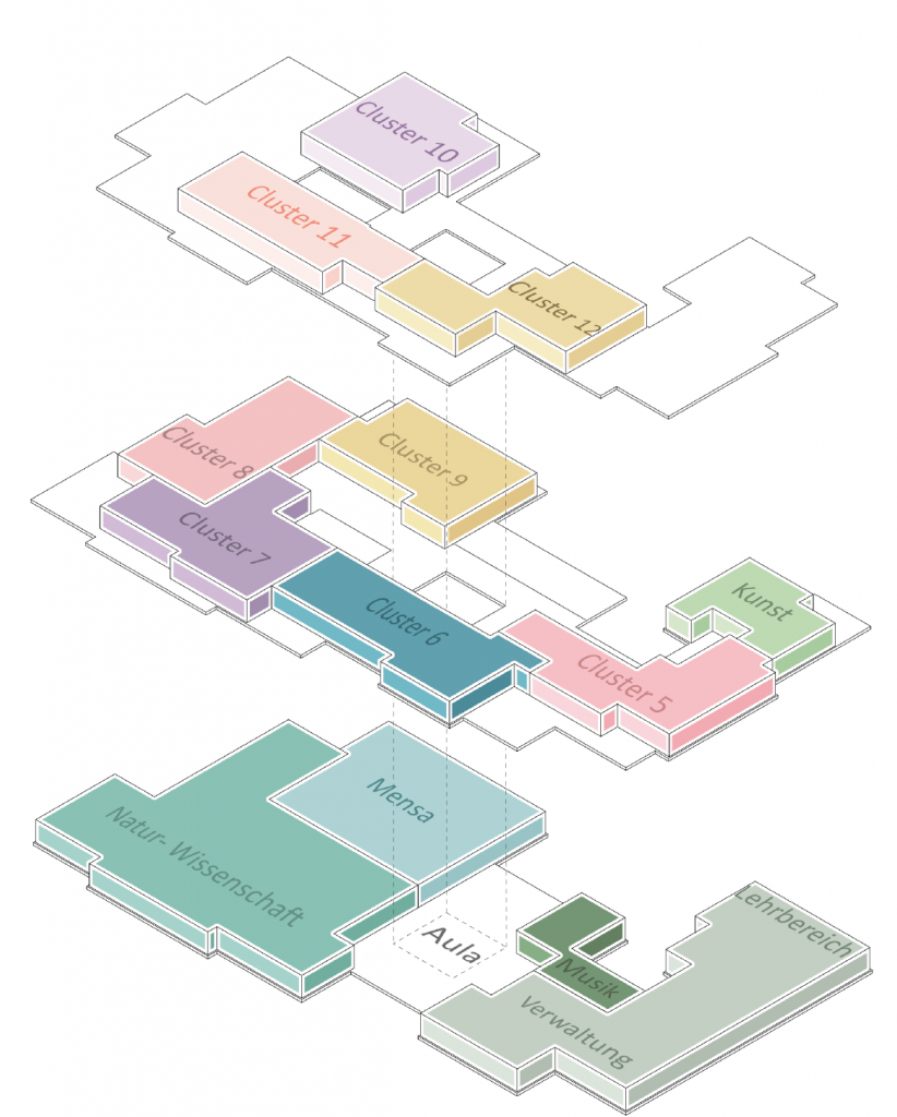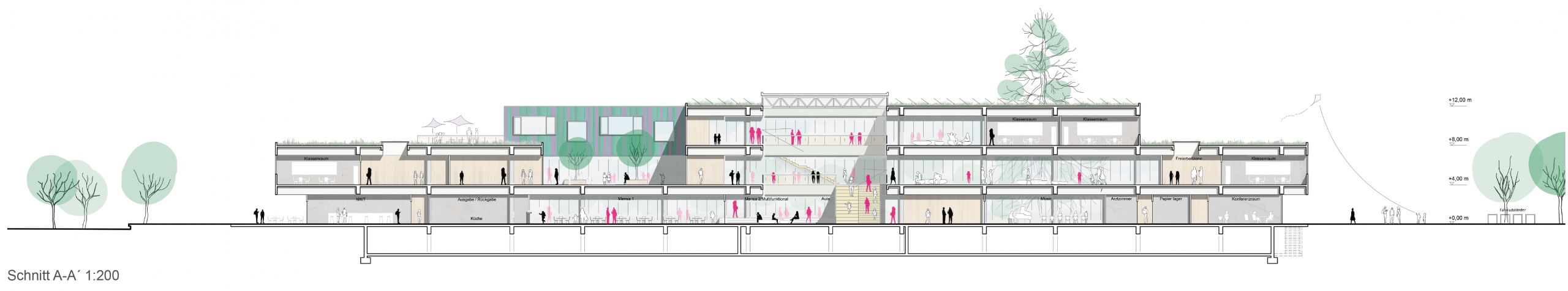 Durch die klare Gliederung, die spielerische Komposition und die Einbindung in die bestehende Topografie entsteht ein lebendiger, nachhaltiger Campus, der den Schüler*innen eine identitätsstiftende Heimat bietet – funktional, flexibel und offen für die Zukunft.
