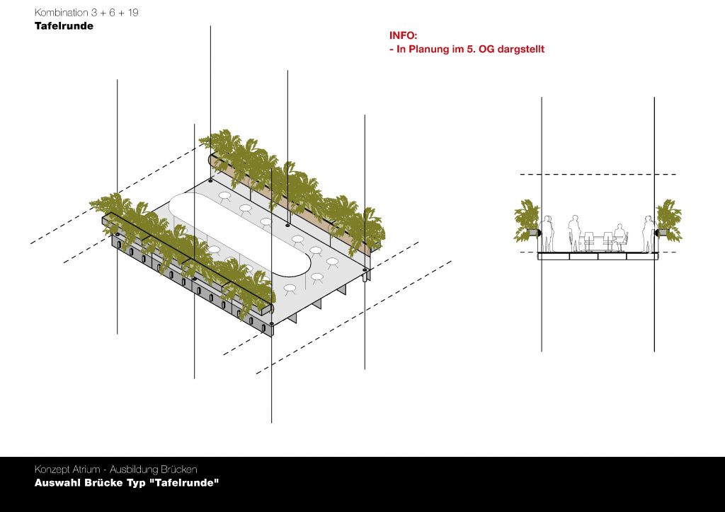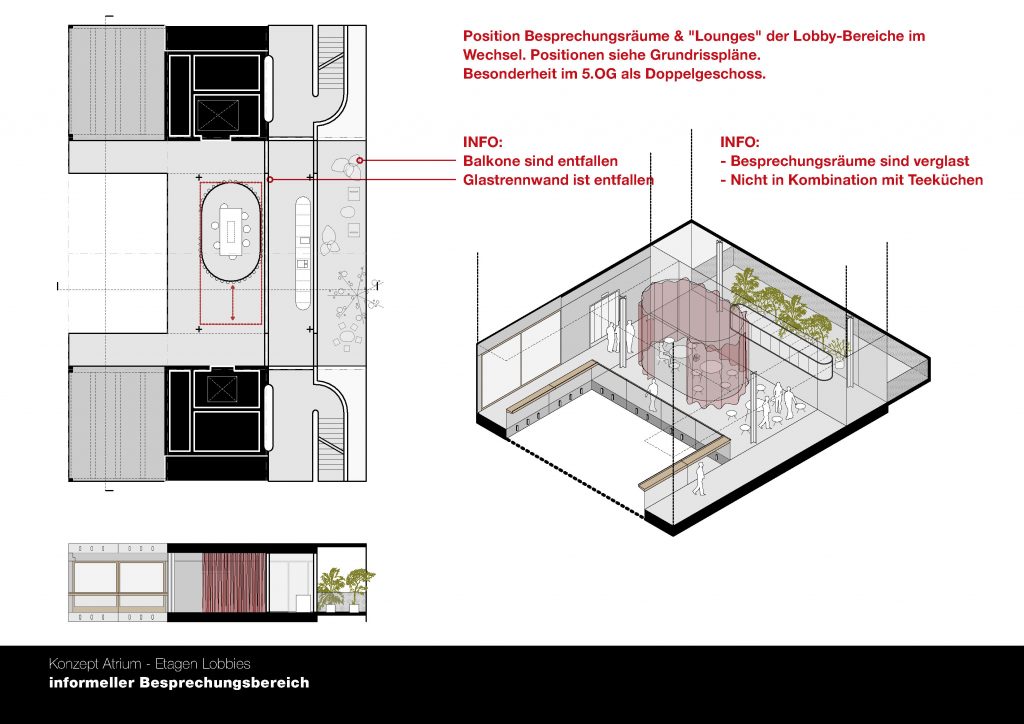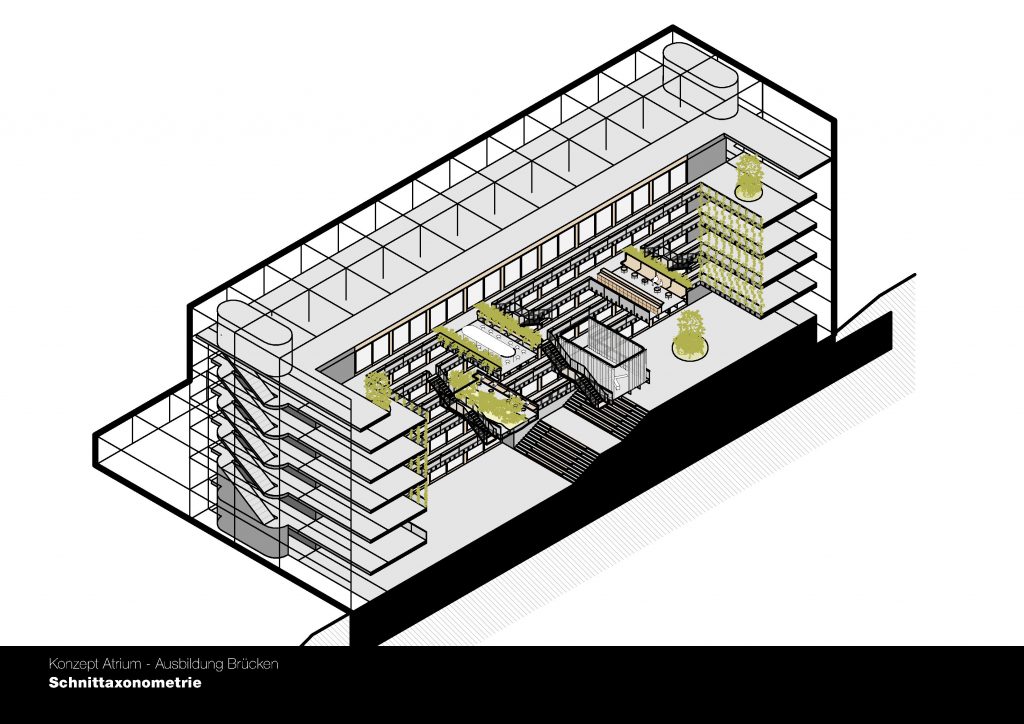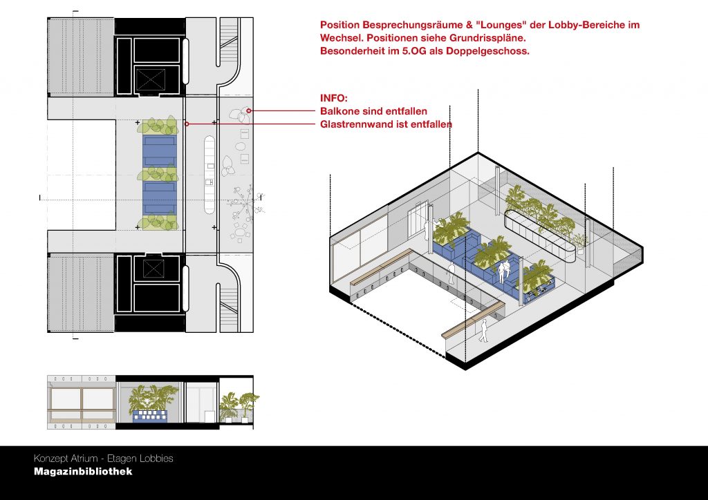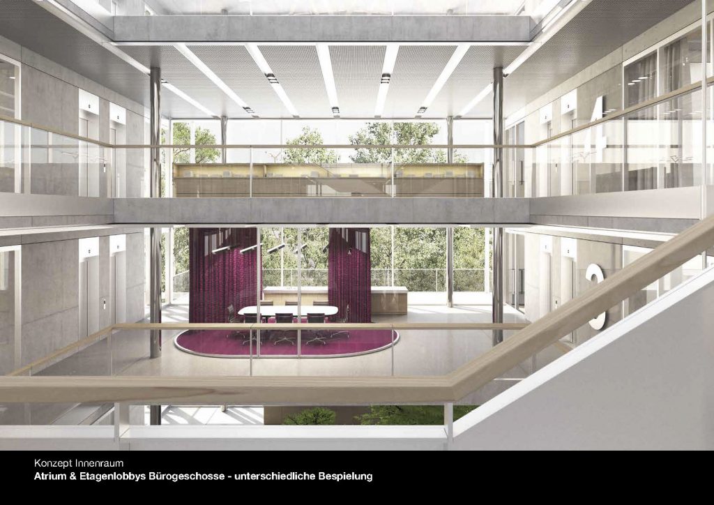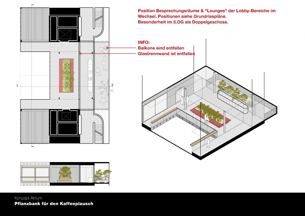 Darüber hinaus umfasst das Projekt die Innenbegrünung des gesamten Gebäudes. Ziel ist es, durch eine grüne, lebendige Atmosphäre das Wohlbefinden der Nutzer*innen zu fördern und eine fließende Verbindung zwischen Innen- und Außenraum zu schaffen.