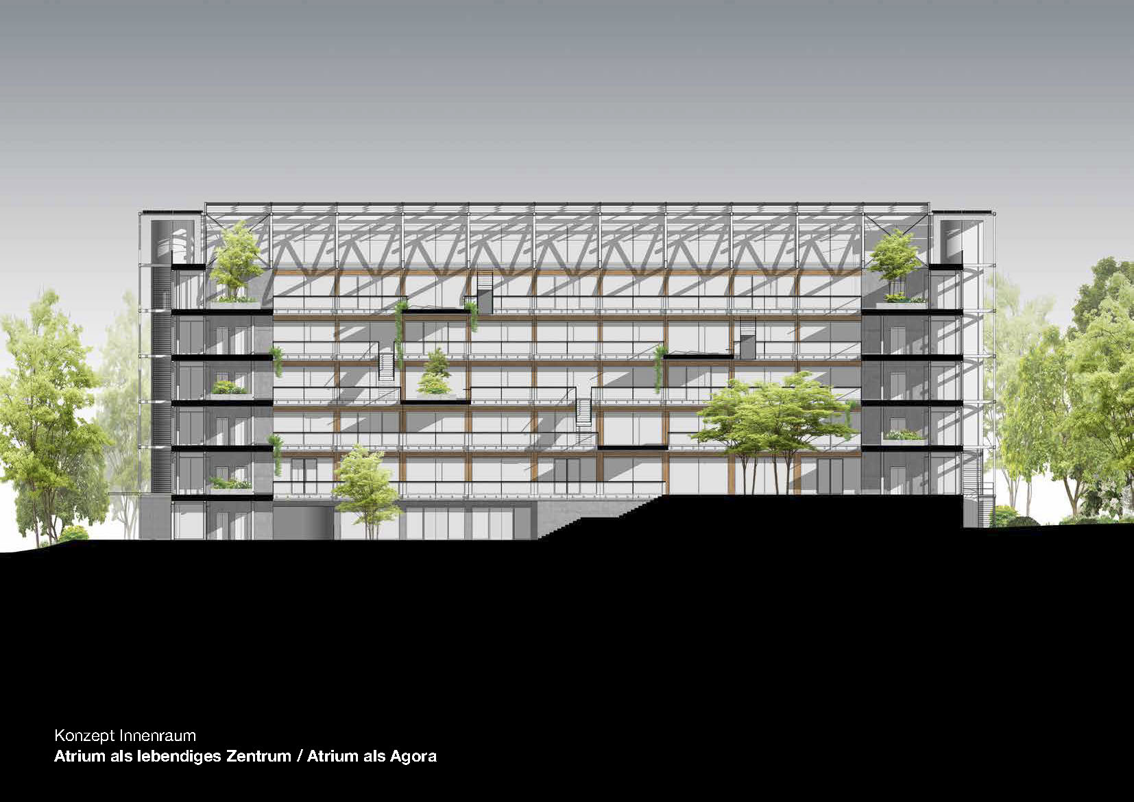 Ziel des Projekts ist es, eine ausgewogene Beziehung zwischen institutioneller Funktionalität, Nachhaltigkeit und einer starken Verbindung zum urbanen und natürlichen Kontext zu schaffen. Der Entwurf sucht die Balance zwischen Repräsentativität und Aufenthaltsqualität, zwischen ökologischer Verantwortung und zeitgemäßer Architektur.