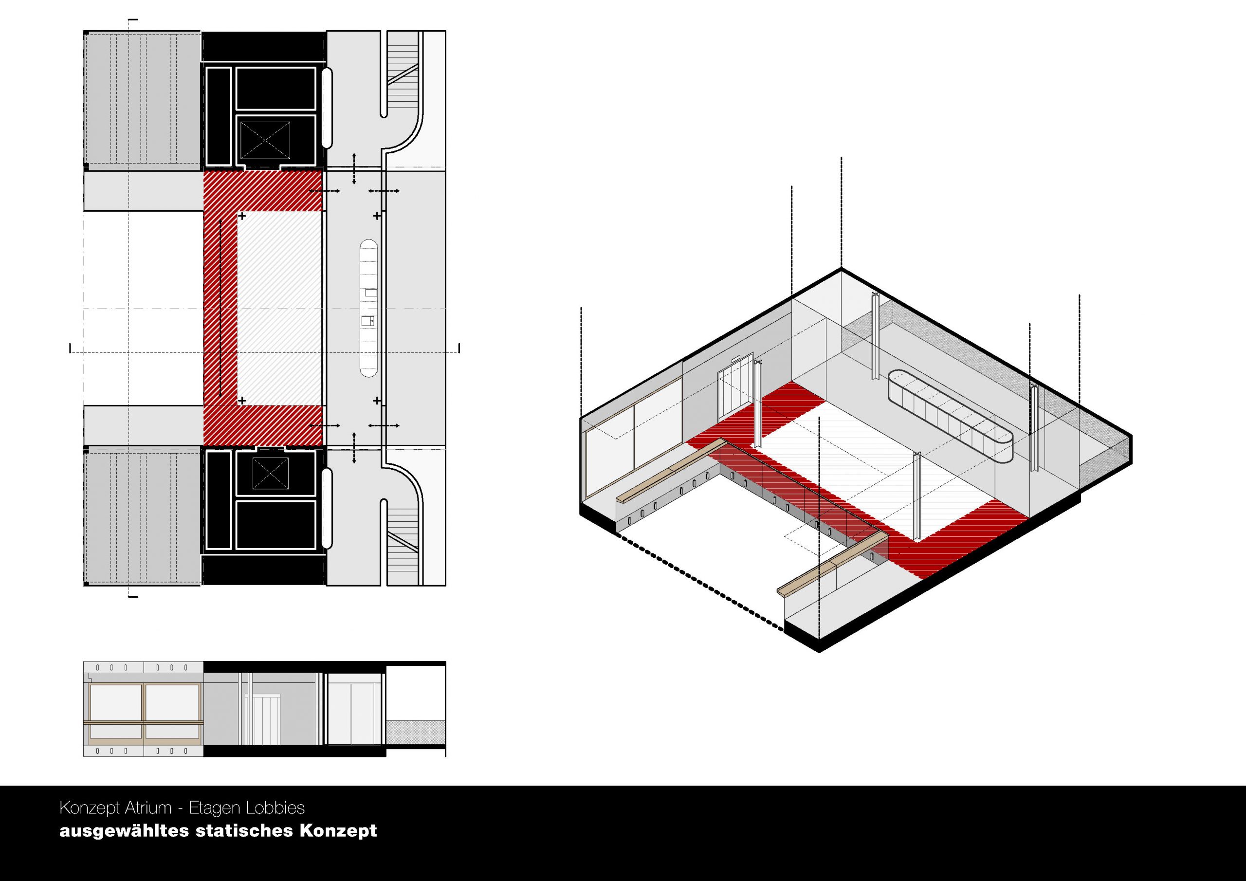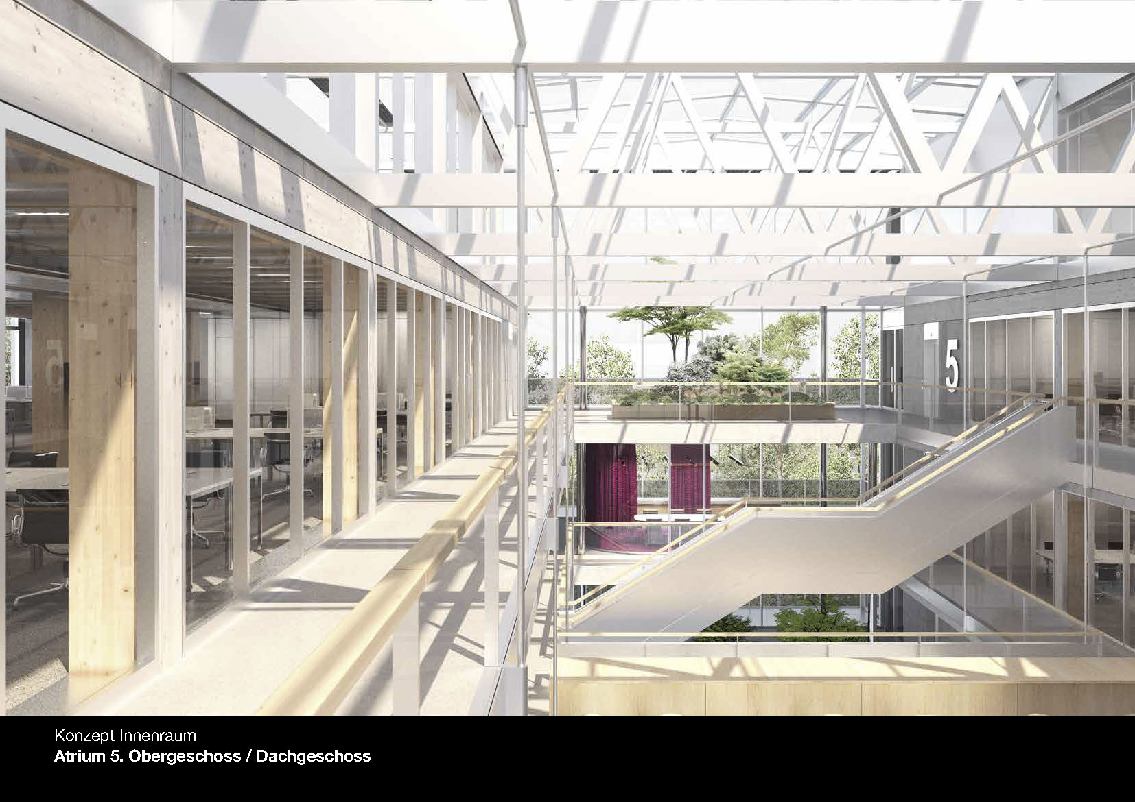 Darüber hinaus umfasst das Projekt die Innenbegrünung des gesamten Gebäudes. Ziel ist es, durch eine grüne, lebendige Atmosphäre das Wohlbefinden der Nutzer*innen zu fördern und eine fließende Verbindung zwischen Innen- und Außenraum zu schaffen.